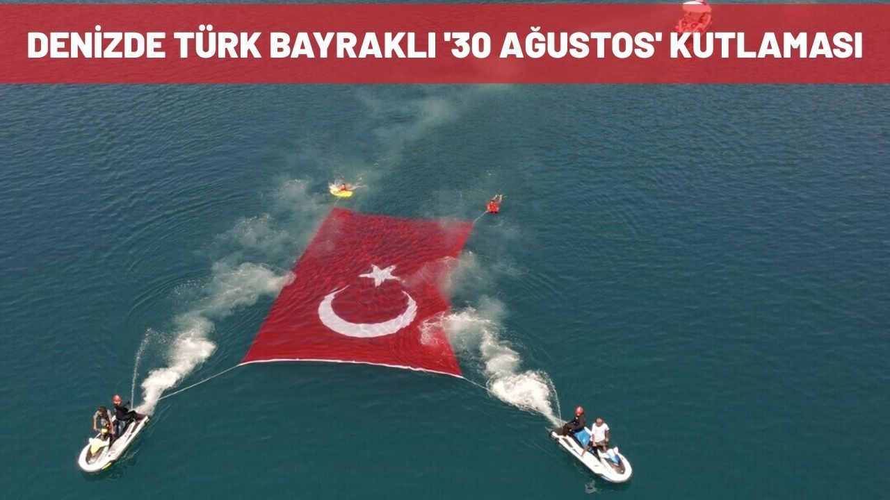 Fethiye ilçesinde dünyaca ünlü Ölüdeniz Kumburnu Plajı’nda 10 kişilik JAK timi, 30 Ağustos Zafer Bayramı dolayısıyla jet ski ile denize açıldı. Ekip, 10 metre uzunluğunda ve 7 metre genişliğindeki Türk bayrağını suda açarak Ölüdeniz’in manzarası eşliğinde dalgalandırdı. Aynı boyutlardaki başka bir Türk bayrağı da iple kayalıklarda açıldı. Kutlama, dron ile havadan görüntülendi.