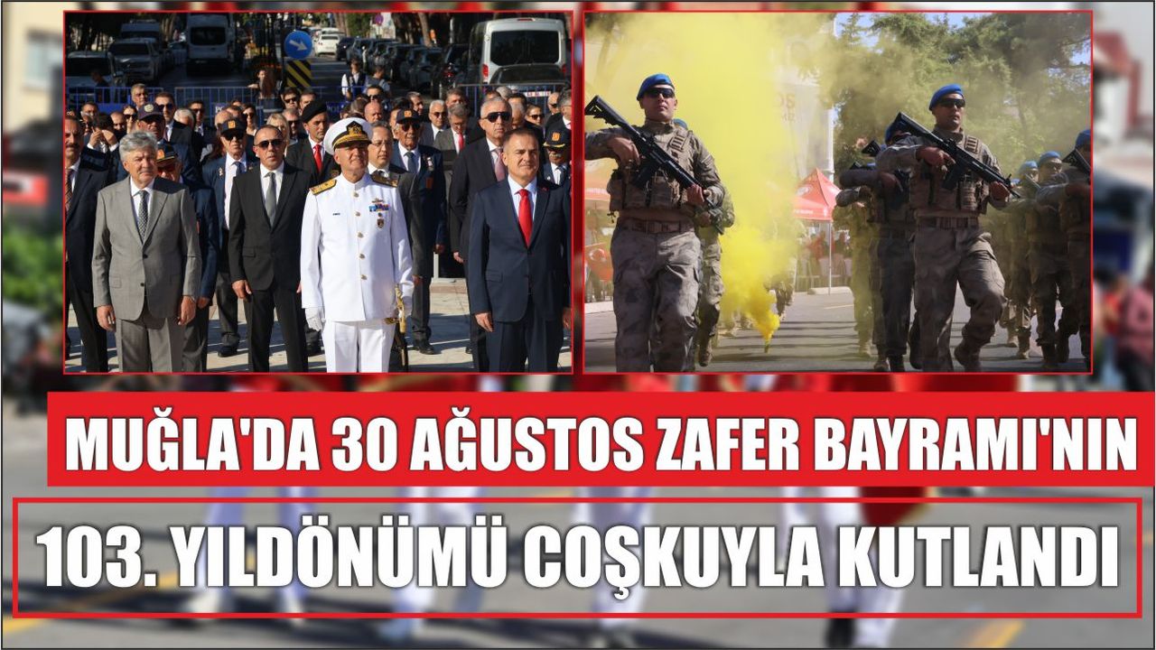 Muğla Cumhuriyet Meydanı’ndaki 30 Ağustos Zafer Bayramı’nın 103. yıldönümü kutlama töreni Muğla Valisi İdris Akbıyık’ın, Garnizon Komutanı ve Güney Deniz Saha Komutanı Koramiral Rafet Oktar’ın Atatürk Anıtı’na çelenk sunması, saygı duruşunda bulunması ve İstiklal Marşının okunulması ile başlandı.