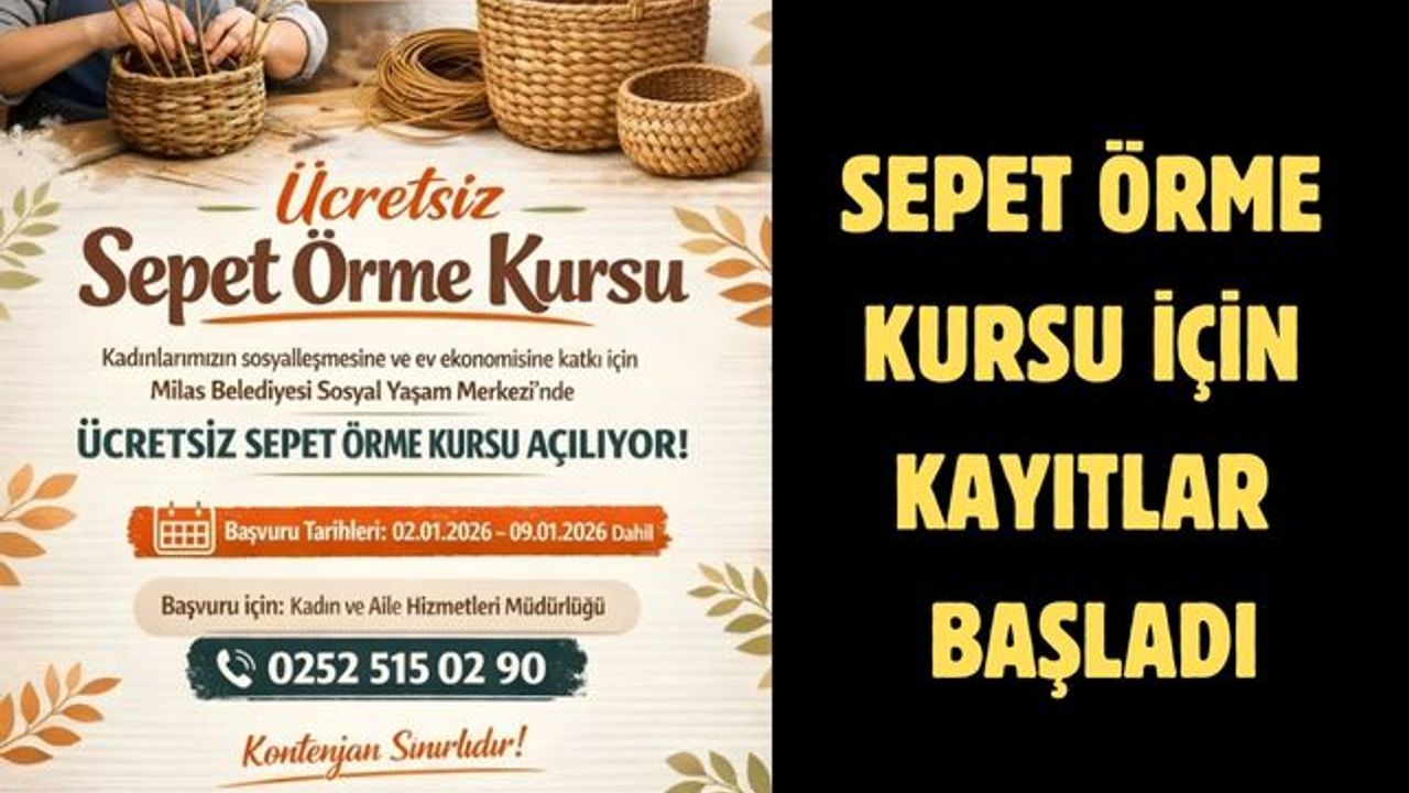 Kadınların sosyalleşmesi ve ev ekonomisine katkı sunmalarına destek olmak amacıyla gerçekleştirilecek olan kursta kadınlar hem eğlenecek hem de becerilerini güçlendirecek. Milas Belediyesi Kadın ve Aile Hizmetleri Müdürlüğü bünyesinde düzenlenecek olan kursta usta öğretici tarafından sepet örme eğitimi verilecek.