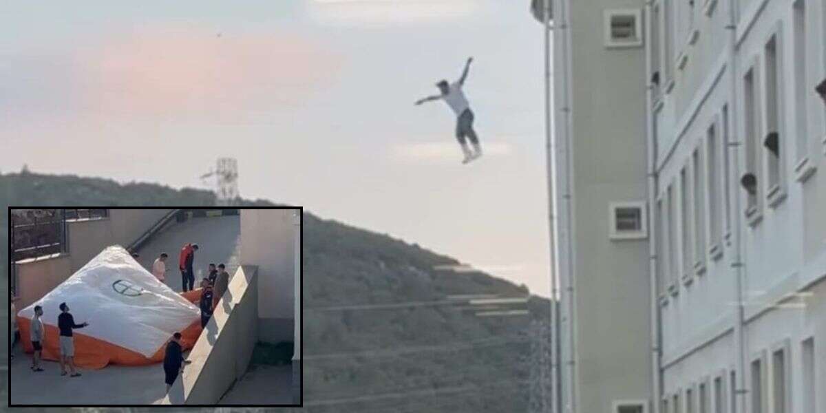 Yetkililer İsmail C. Adlı öğrenciyi ikna ettiler ve ögrenci AFAD’ın kurtarma Yastığına atladı.